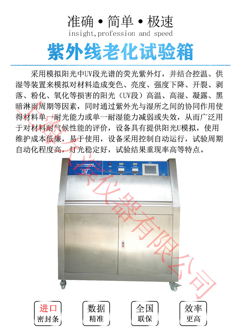 陽(yáng)光和濕氣對(duì)材料的破壞,每年造成數(shù)以萬(wàn)計(jì)的經(jīng)濟(jì)損失,紫外光耐氣候試驗(yàn)箱可以再現(xiàn)陽(yáng)光、露水所產(chǎn)生的破壞。試驗(yàn)箱通過(guò)將待測(cè)材料曝曬放在經(jīng)過(guò)控制的陽(yáng)光和濕氣的交互循環(huán)中,同時(shí)提高溫度的方式來(lái)進(jìn)行試驗(yàn),試驗(yàn)箱采用紫外線熒光燈模擬陽(yáng)光,同時(shí)通過(guò)冷凝的方式模擬濕氣影響。