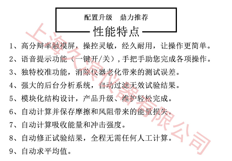 XJ系列擺錘式組合沖擊試驗機主要技術(shù)參數(shù)符合ISO 179、IS0 180、GB/T 1043、GB/T 1843、JB/T 8761、JB/T 8762、GB/T 2611等標(biāo)準(zhǔn)要求,當(dāng)更換不同沖擊擺,再配合調(diào)整鉗口座即可做各種沖擊試驗。本機可對簡支梁(包括管材試驗)、懸臂梁沖擊試驗機在以下能量范圍內(nèi)可進行任意組合。如果選用單臺或某幾種能量本機可實現(xiàn)無任何障礙的升級為全能量的組合沖擊試驗機。本系列組合沖擊試驗機具有一機多能量,使用范圍廣、操作方便、產(chǎn)品精度高等顯著特點,是國內(nèi)產(chǎn)品質(zhì)檢部門、大中專院校、科研院所和各塑料生產(chǎn)企業(yè)必備的綜合型試驗儀器。