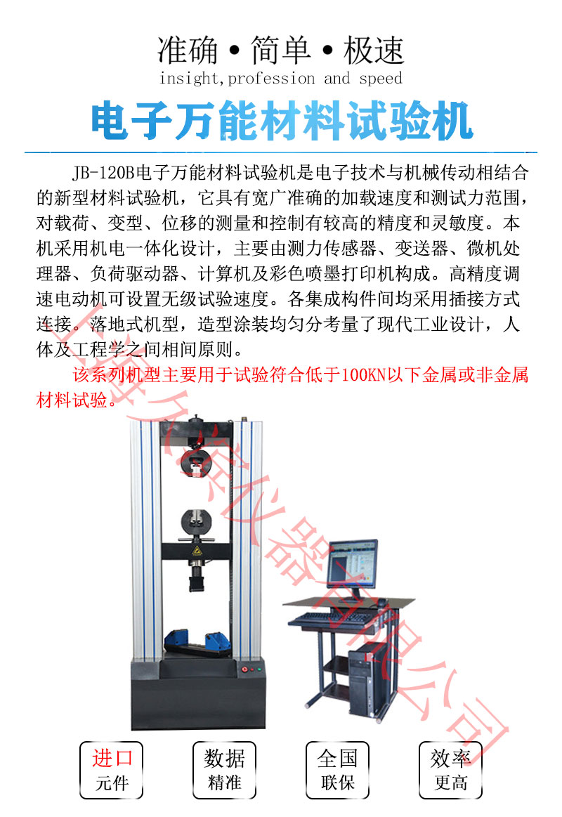JB-120系列電子萬能材料試驗(yàn)機(jī)是電子技術(shù)與機(jī)械傳動(dòng)相結(jié)合的新型材料試驗(yàn)機(jī),它具有寬廣準(zhǔn)確的加載速度和測試力范圍,對(duì)載荷、變型、位移的測量和控制有較高的精度和靈敏度。本機(jī)采用機(jī)電一體化設(shè)計(jì),主要由測力傳感器、變送器、微機(jī)處理器、負(fù)荷驅(qū)動(dòng)器、計(jì)算機(jī)及彩色噴墨打印機(jī)構(gòu)成。高精度調(diào)速電動(dòng)機(jī)可設(shè)置無級(jí)試驗(yàn)速度。各集成構(gòu)件間均采用插接方式連接。落地式機(jī)型,造型涂裝均勻分考量了現(xiàn)代工業(yè)設(shè)計(jì),人體及工程學(xué)之間相間原則。