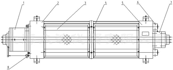 1、圖1為試驗機(jī)整機(jī)外觀示意圖。該機(jī)由主機(jī)部分、測量控制系統(tǒng)、液壓張拉設(shè)備及防護(hù)裝置組成。