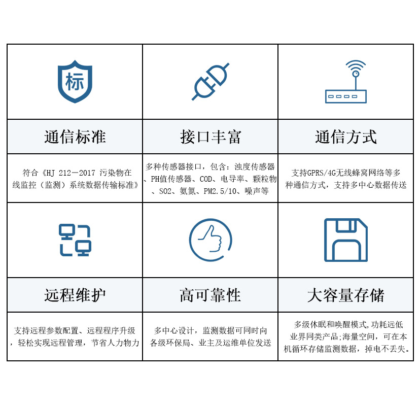 環(huán)保數采儀(WD-268D )是環(huán)境監(jiān)測、污染源監(jiān)控專用數采儀,符合國標通信標準,支持《污染物在線自動監(jiān)控(監(jiān)測)系統數據傳輸標準》(HJ 212-2017、HJ/T 212-2005);產品按照工業(yè)級標準設計,針對環(huán)境監(jiān)測的各種要求做了專門的優(yōu)化,支持Ethernet/GPRS/NB-IoT/4G等通信方式,滿足不同現場環(huán)境下對遠程通信的要求。 數據采集終端充分利用人工智能物聯網、大數據云計算等信息技術,實時監(jiān)控污染源在線監(jiān)測系統狀態(tài),實現智能感知預警,降低企業(yè)運維成本,大幅提高企業(yè)運維和政府監(jiān)管效率。適用于污水在線監(jiān)控、煙氣在線監(jiān)控、污水總量在線監(jiān)控等實時監(jiān)測場景使用。