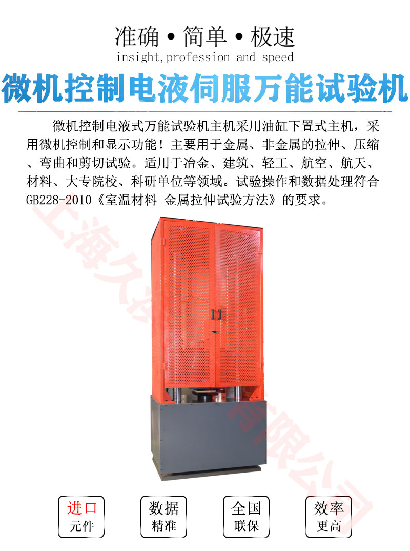 微機(jī)控制電液式萬能試驗(yàn)機(jī)主機(jī)采用油缸下置式主機(jī),采用微機(jī)控制和顯示功能!主要用于金屬、非金屬的拉伸、壓縮、彎曲和剪切試驗(yàn)。適用于冶金、建筑、輕工、航空、航天、材料、大專院校、科研單位等領(lǐng)域。試驗(yàn)操作和數(shù)據(jù)處理符合GB228-2010《室溫材料 金屬拉伸試驗(yàn)方法》的要求。