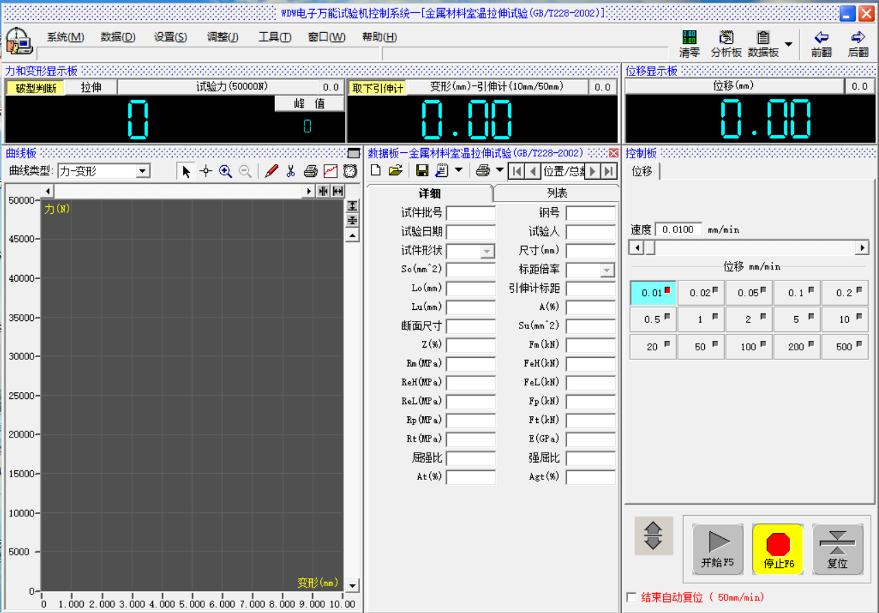 8、動態(tài)顯示:測試過程中,負荷、伸長、位移及選中的試驗曲線隨著測試的進行,實時動態(tài)顯示在主控屏幕上。